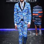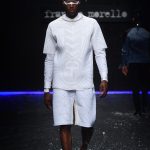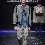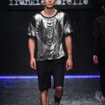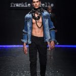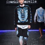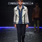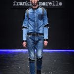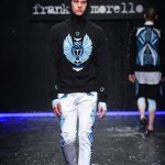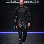 Una collezione-metamorfosi dalla preponderanza di neri, blu elettrici, denim, contaminazioni rock e geometriche; una visione, quella di Nicholas Poggioli, direttore artistico di Frankie Morello, che apre le acque alla maniera di Mosè, dentro puoi vederci il nulla o il tutto, il mistero della vita, della fede, dell’esistenza di esseri superiori; natura e tradizione sono un tutt’uno, l’astrattismo diventa concreto e l’impossibile diviene possibile.