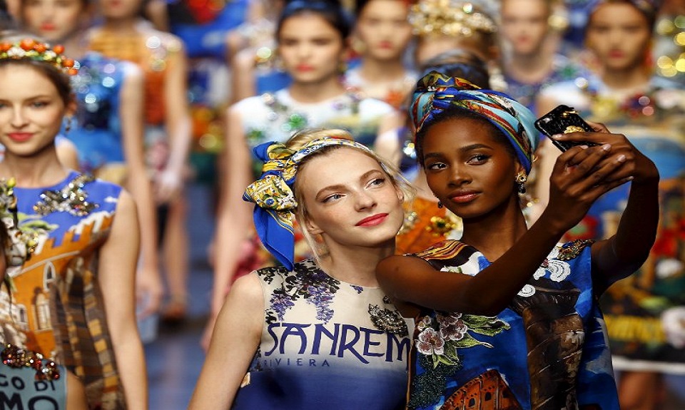 Dal vintage, protagonista anche della colonna sonora della sfilata, al trionfo della tecnologia: i selfie scattati dalle modelle in passerella vengono prontamente postati in tempo reale su Instagram sull’account ufficiale della maison. Dolce & Gabbana si rivelano ancora una volta brillanti manager di se stessi: più che una trovata pubblicitaria, la loro è una dichiarazione di stile, su cui si basa il successo di numerose iniziative del brand, seguitissimo sui social network e non nuovo a provocazioni simili.
