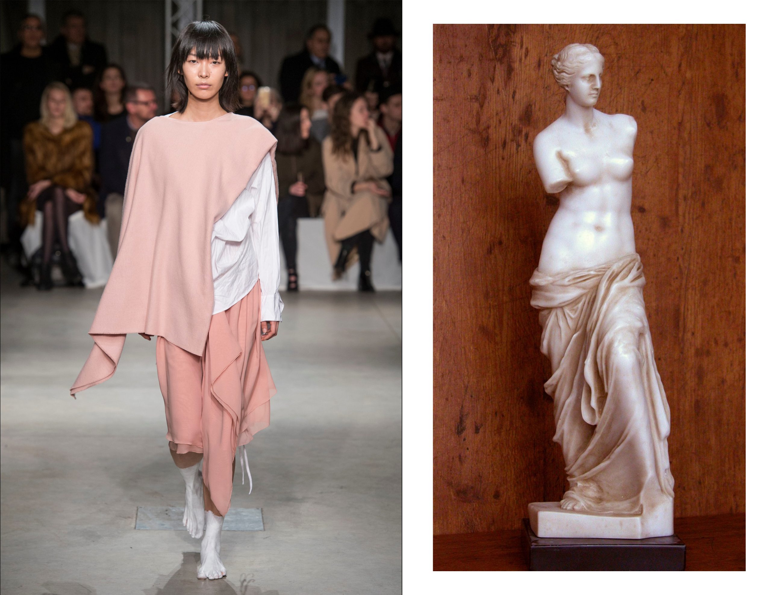 Una ricerca estetica pulita, essenziale, dove il rigore e la semplicità si mescolano, nessuna sovrastruttura, nessun orpello, solo l’indispensabile, il drappo che i greci usavano per coprire il corpo e non per “agghindarsi”.