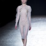 Nella libertà e liberazione del corpo di Einar Wegener (Lili Elbe) – primo transessuale della storia – la collezione si sprigiona e si ispira in un nude look dai colori cipria, bianco, moutarde, clinique con sete e veli decorati da preziose micropaillettes.