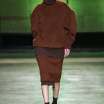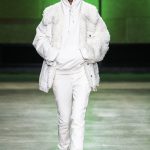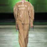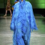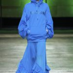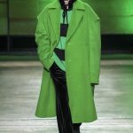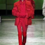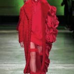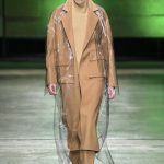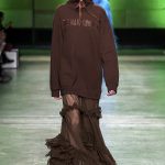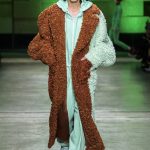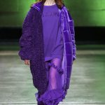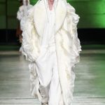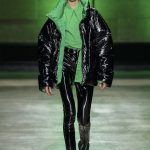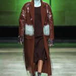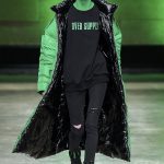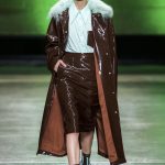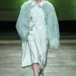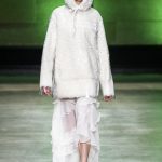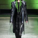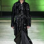 I capi di stili differenti si mescolano, l’eco pelliccia copre l’abito in tulle, la vernice si fa strada sui bomber, il pvc compare sui completi di taglio maschile e riceve applicazioni in pelliccia sui trench, il cappuccio diventa simbolo feticcio.