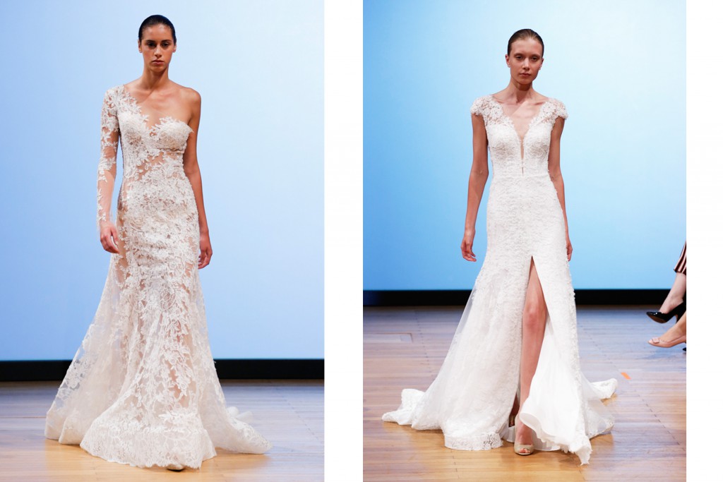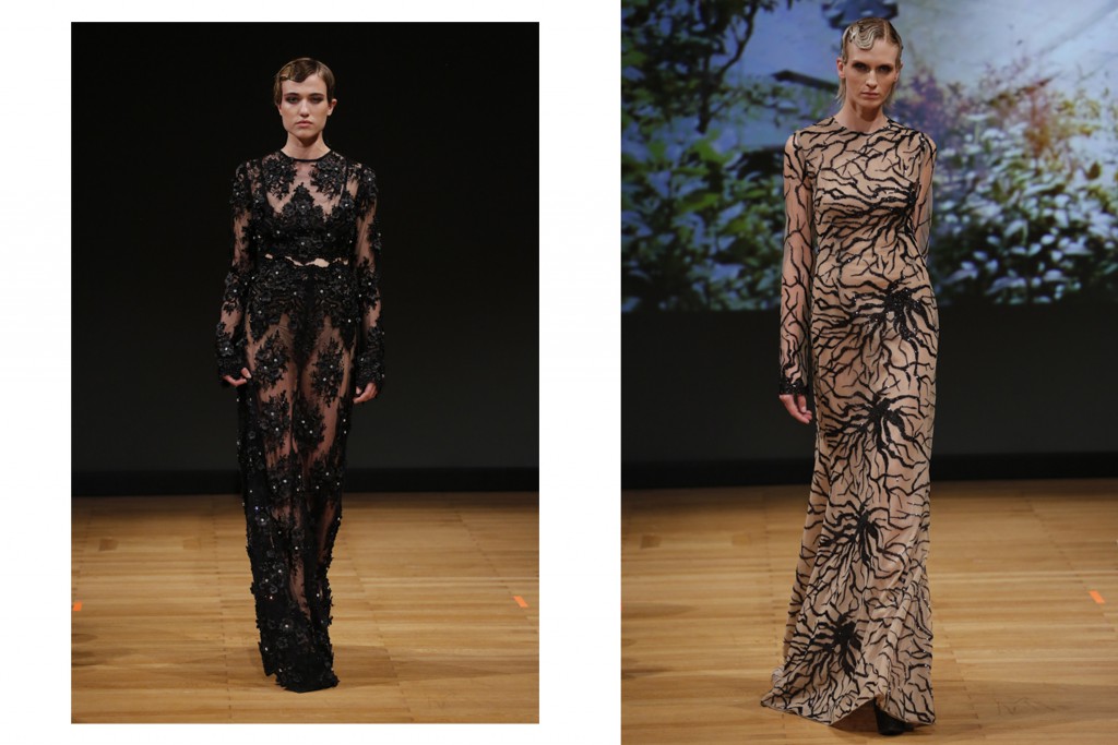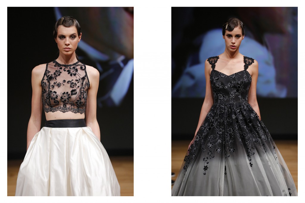 I capi couture sono realizzati con pizzi ricamati, taffetà e paillettes; le linee seguono le sinuosità del corpo femminile, esaltandone la bellezza e sono impreziositi da applicazioni Swarovski.