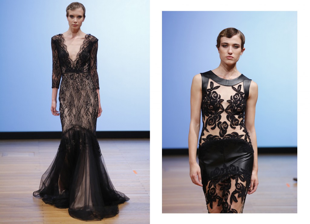 I capi si alternano in tessuti leggeri e fascianti, tra pizzi, cristalli, pelli iridescenti e ricchi plissé.