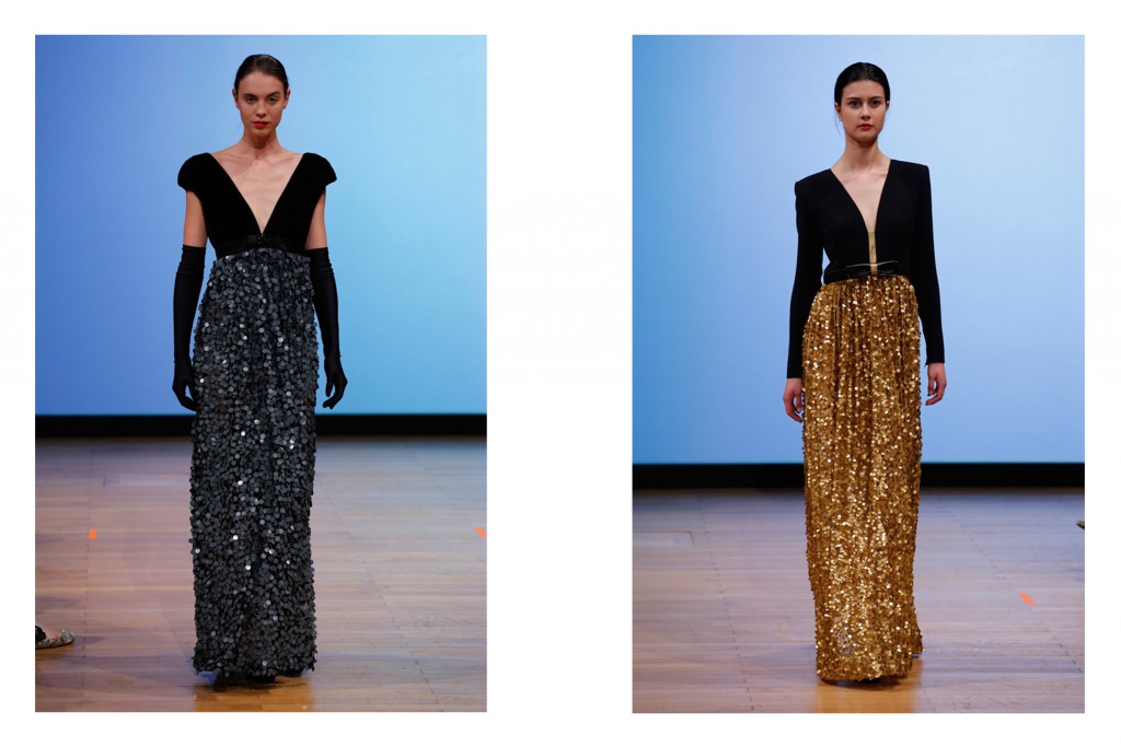 Sartorialità, maestria ed eleganza, le parole chiave dei couturiers Alessandro Angelozzi e Rhea Costa.
