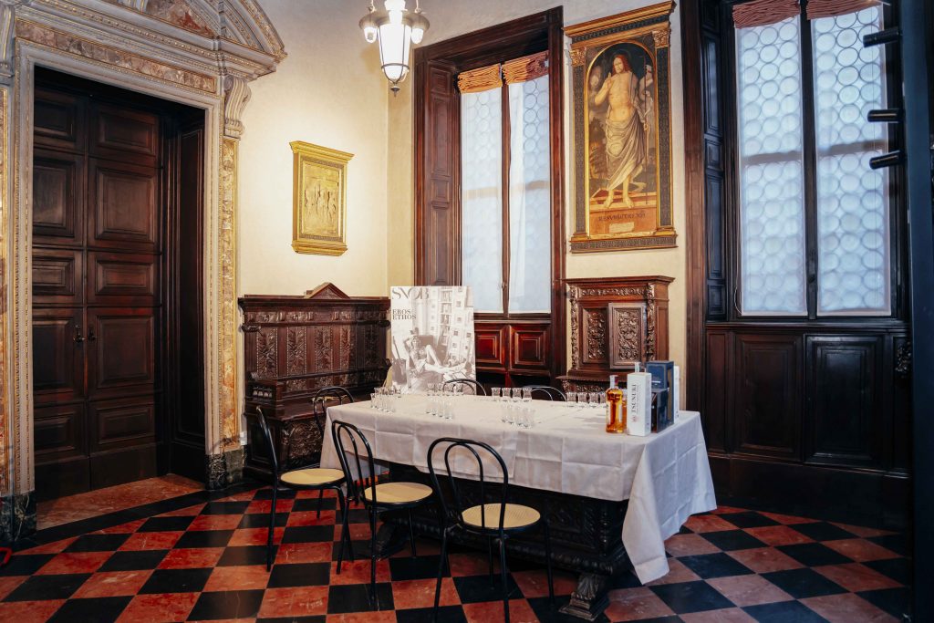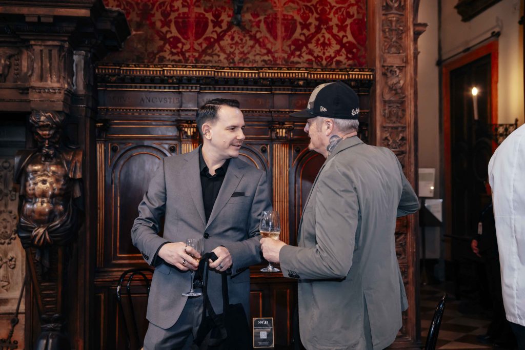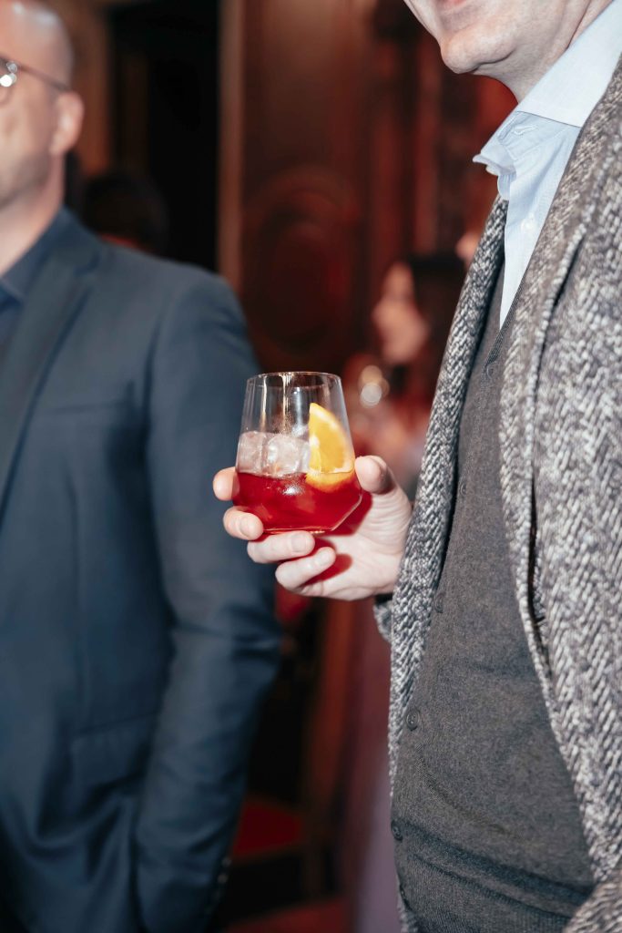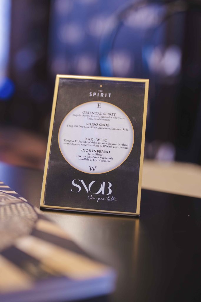 Il benvenuto è stato affidato a una flûte di Champagne A. Robert, maison récoltant-manipulant della Vallée de la Marne dal 1722, selezionata da Fine Spirits, che ha accompagnato la serata con una carta di distillati d’eccezione: dal Song Cai Dry Gin vietnamita al Tamdhu 12 Speyside, dal The Hearach delle Ebridi Esterne ai due whisky giapponesi Mars Komagatake e Mars Tsunuki, fino al Vermouth 9diDANTE Inferno ispirato ai nove gironi danteschi e al Terza Bitter in batch limitati da 6.666 bottiglie.