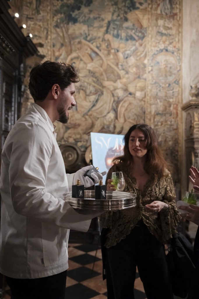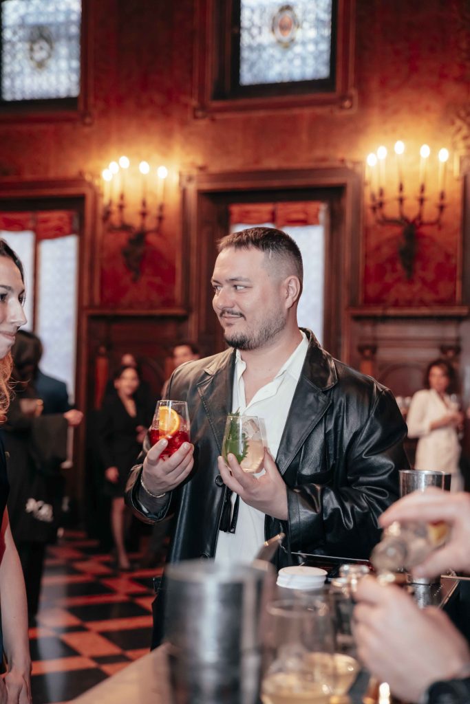 La drink list è stata firmata da The Spirit Milano — il membership club di Porta Romana fondato nel 2017 — nella persona del Bar Manager Ivan Francesco Filippelli, formatosi tra i più autorevoli indirizzi della mixology londinese, dal 69 Colebrooke Row di Tony Conigliaro all’Hotel Café Royal. I cocktail della serata hanno dialogato con i profumi alimentari WDRINK, vaporizzati direttamente sui drink per aggiungere una dimensione olfattiva inedita all’esperienza della miscelazione.