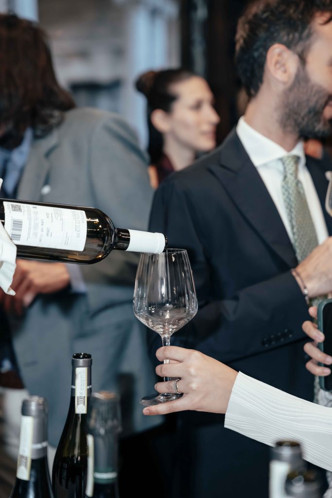 La selezione vinicola ha visto protagoniste due cantine di territorio: Vinchio Vaglio dal Monferrato, con la Barbera d’Asti e le bollicine dell’Alta Langa, e Antica Hirpinia dall’Irpinia, con il Fiano di Avellino e il Coda di Volpe — due espressioni di una terra vulcanica tra le più vocate del Sud Italia.