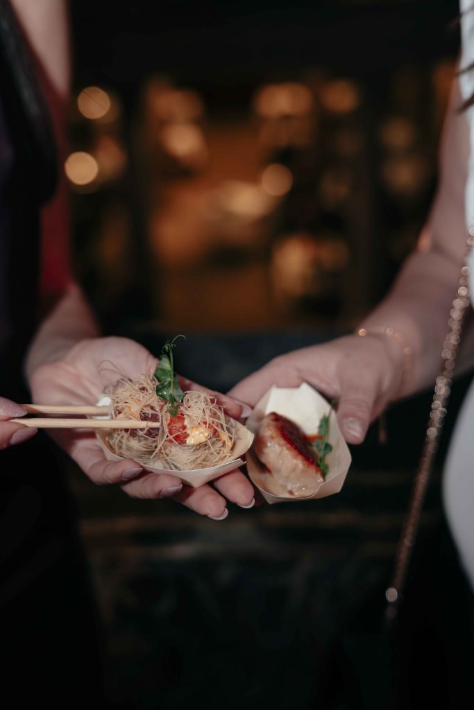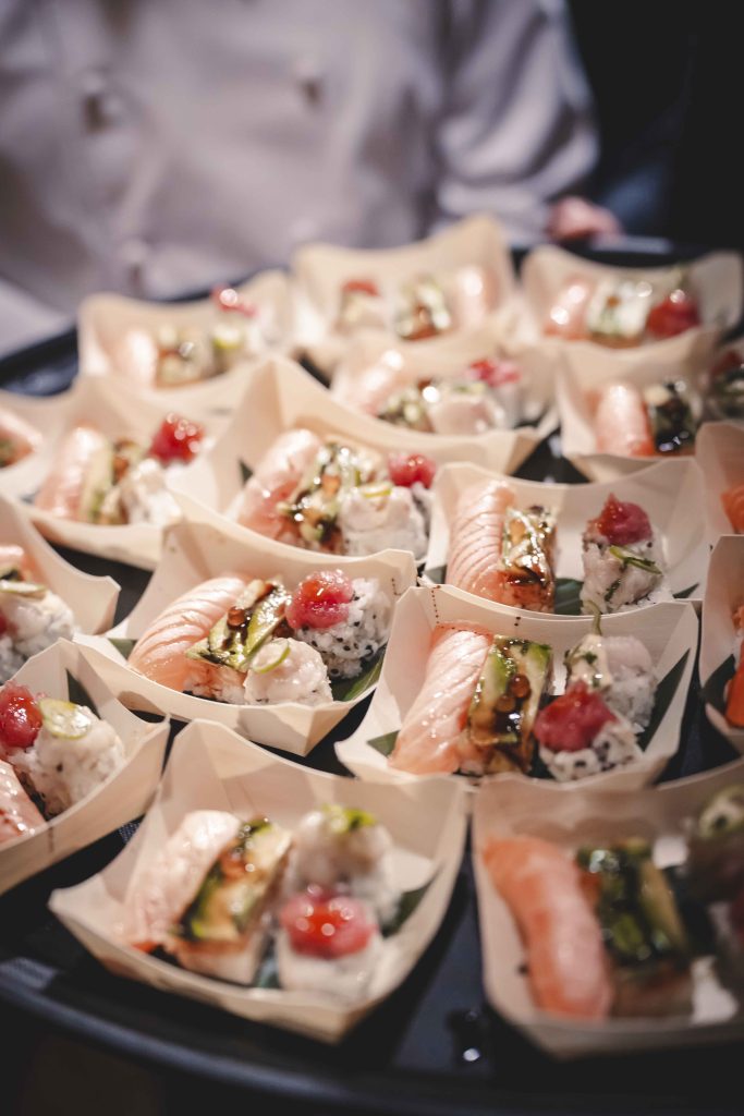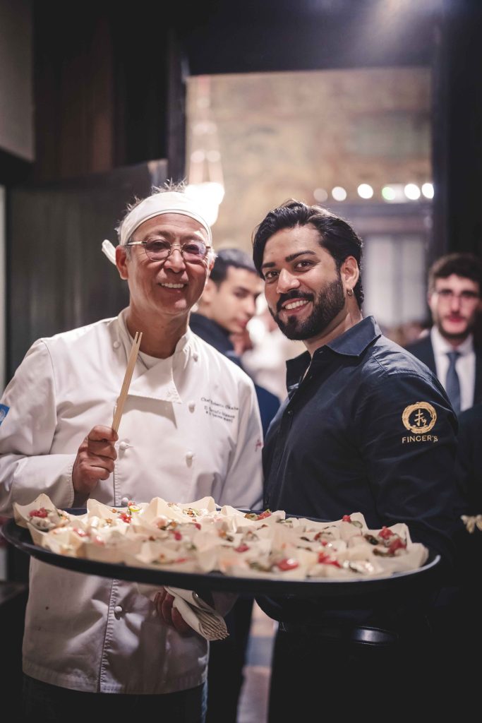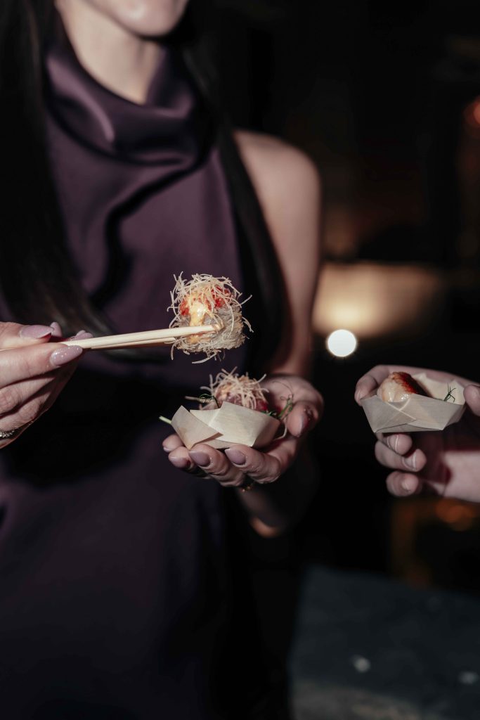 Finger’s Garden — la realtà fondata nel 2004 dallo chef Roberto Okabe, nato in Brasile da genitori giapponesi e formatosi tra Tokyo e San Paolo — ha curato la food experience con una selezione di finger sushi che racconta vent’anni di dialogo tra culture gastronomiche. Una presenza che non poteva essere più perfetta per una serata dedicata all’incontro tra Oriente e Occidente.