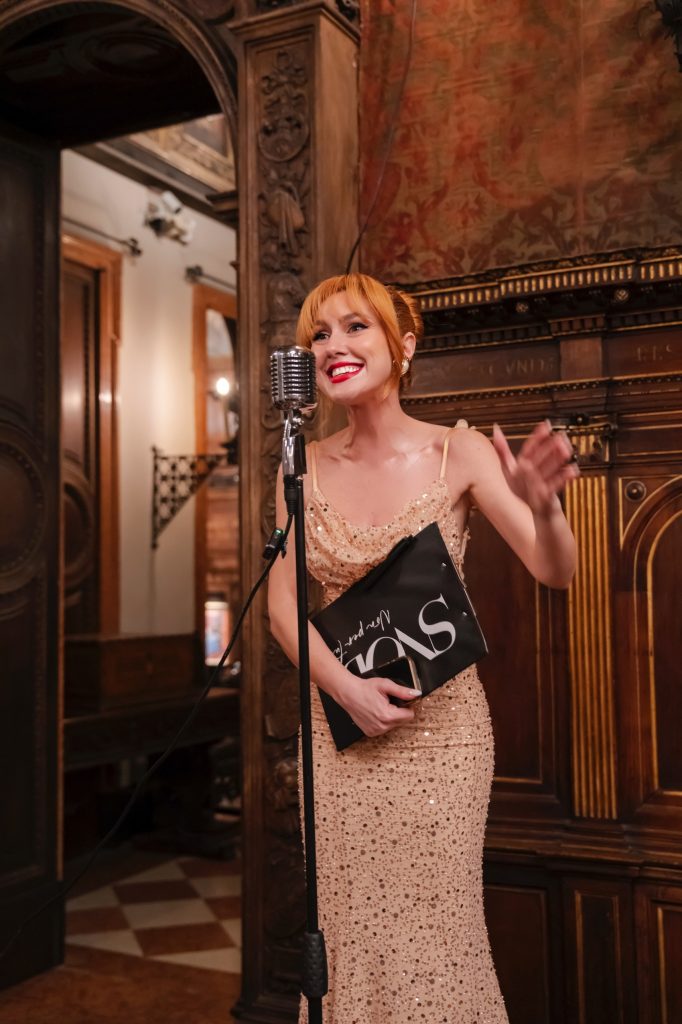 Ad aprire la serata, Miriam De Nicolò, Fondatore e Direttore Responsabile di SNOB Magazine, con un discorso che ha attraversato l’anima del numero e il senso stesso del progetto editoriale. De Nicolò ha voluto rivolgere il primo e più importante ringraziamento a tutti coloro che rendono possibile ogni numero cartaceo: giornalisti, fotografi, make-up artist, stylist, set designer, art director, modelle e assistenti. Un gesto tutt’altro che formale, in un momento storico in cui l’editoria indipendente attraversa una delle sue stagioni più difficili: testate storiche che chiudono, case editrici che liquidano i collaboratori, redazioni che si svuotano. In questo contesto, SNOB sceglie la cultura non come semplice prodotto da ottimizzare, ma come patrimonio da proteggere. “Senza queste persone questo numero non esisterebbe”, ha dichiarato De Nicolò. “Richiede lavoro, visione, dedizione collettiva. Ed è per questo che merita di essere celebrato.”