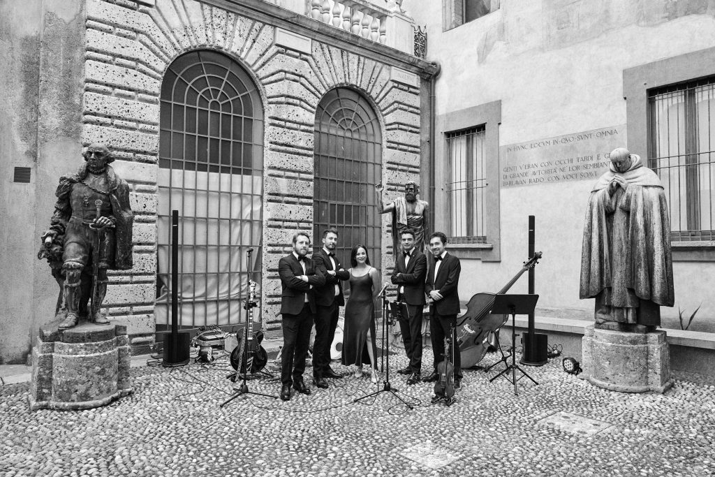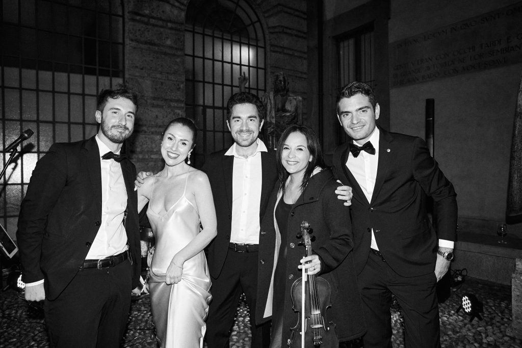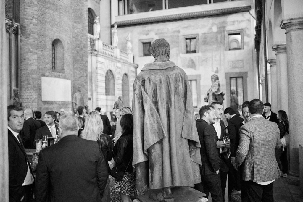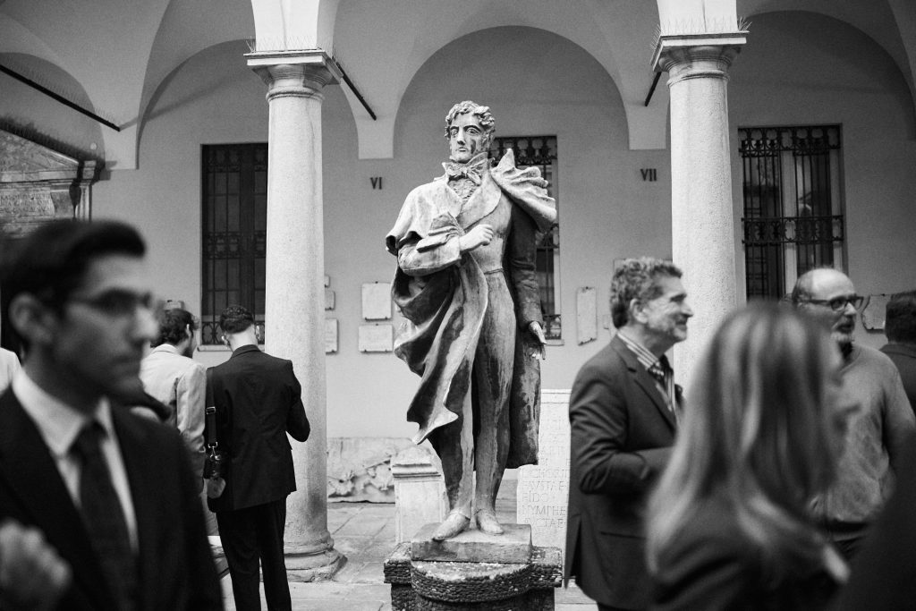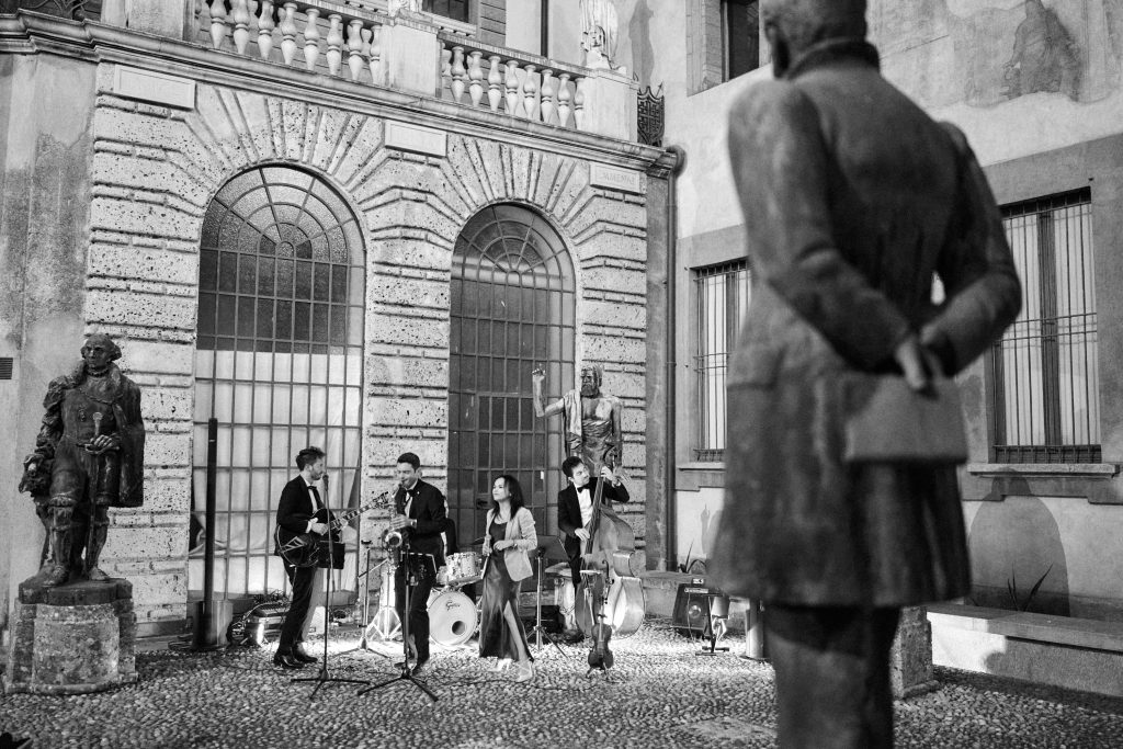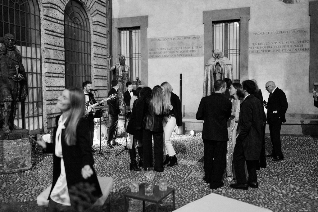 Un’atmosfera magica accompagnata da musica jazz e swing con voce femminile di Ambra Lo Faro e la prestigiosa location circondata dalle imponenti statue degli Spiriti Magni, i nomi d’intelletto, spirito e dignità di cui parla Dante, da Chateaubriand a Goethe, da Shakespeare a Platone.