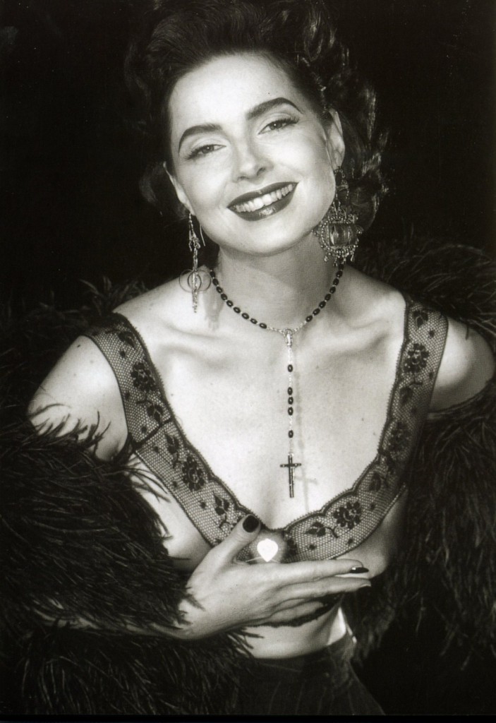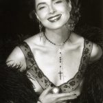I contorni del viso netti, gli zigomi altissimi, un girovita da far invidia alla Principessa Sissi, che ha dedicato la sua esistenza a ridurlo al limite; un collo del piede che forse solo Dita Von Teese ha sottolineato nei suoi spettacoli di burlesque, e un côté civettuolo nel chiedere le cose, un po’ Lolita, un po’ bambina.