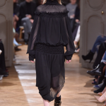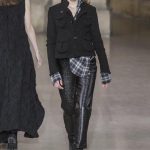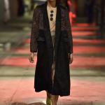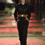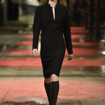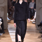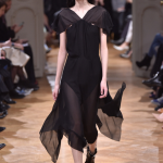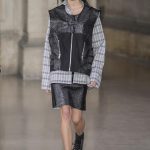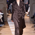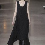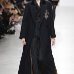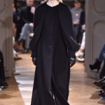 Suggestioni workwear dominano nella collezione autunno/inverno 2017-18 di Valentin Yudashkin, che ha sfilato nell’ambito della Paris Fashion Week. Lo stilista russo sforna una collezione creata a quattro mani con la figlia Gala, in bilico tra note daywear e glamour. Eleganza aplomb si unisce a comfort e portabilità estrema di capi che strizzano l’occhio ad uno stile effortlessy-chic, mirabile espressione della contemporaneità. Yudashkin, famoso per le sue stravaganze, stavolta resta fermo su una sobrietà che convince ed affascina: presentando la figlia Gala come nuovo direttore artistico del brand, lo stilista inaugura un’epoca nuova, in cui un tocco ed una prospettiva femminili fanno il propro ingresso trionfale nell’estetica della griffe. Una moda pratica e funzionale, quella che ha sfilato alla settimana della moda parigina, che non disdegna però capi pensati per le grandi occasioni. A trionfare il black all over, declinato su capispalla scultorei e giacche doppiopetto da indossare con minigonne: tra gli accessori tripudio di stivali e borse che attraversano la silhouette. Le silhouette variano, il corto e il lungo si intervallano, in sapienti giochi di proporzioni e contrapposizioni. Largo a giacche dal piglio sporty e cappotti lunghi, mentre la pelle domina nelle gonne, come materiale passepartout pensato per il daywear. Non mancano suggestioni tailoring nei cappotti, specie nei gessati, che conferiscono un’allure chic anche agli abiti corti, ed accenni di tulle e passamaneria, che inaugurano il glamour di sette capi che elogiano la femminilità. Gambe in primo piano, velate da chiffon e segnate da drappeggi, inaugurano la nuova estetica di Yudashkin, che si apre ad una visione più delicata della donna.