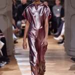 Per concludere la giornata è scesa in passerella la purezza, la sensualità e un’eleganza semplificata e raffinata di GRETA BOLDONI. Lo fa sovvertendo i codici stilistici, intersecando abbigliamento di ispirazione clericale e outerwear tecnico, sartorialità e sportswear, dove semplice magliette lavorate con carré in bava di nylon con effetti trasparenti e l’abito lungo diventa un capo da giorno.