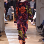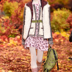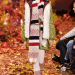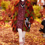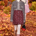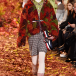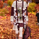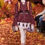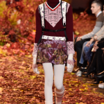 Romantica e suggestiva la collezione autunno/inverno 2017-18 di Moncler Gamme Rouge: su un tappeto di foglie autunnali sfila una nuova stagione firmata Giambattista Valli, in bilico tra folclore e raffinatezza. Il mood predominante prediige l’outdoor, per una moda funzionale pensata per una donna che affronta il rigore invernale tra i boschi e vallate impervie. Come un folletto, stretta in iconici mantelli decorati con stampe bohémien, la donna Moncler non rinuncia allo charme: in una passerella invasa da fogliame e muschio selvatico, viene proiettato alle pareti un video evocativo che rappresenta la foresta, in un accattivante sentiero selvaggio che ci prende per mano portandoci in una full immersion nella natura. Una natura beffarda ma amica, che ricorda nella tavolozza cromatica certi scenari del Canada. Femminilità delicata si alterna ad un mood folk, tra knitwear pregiato, come i tweed provenienti dalla Isola di Fair, e il fascino di note boho-chic che trovano espressione nelle stampe floreali, in bilico tra un tapestry dal piglio rétro ed un inedito mix & match. Non mancano accessori come i calzini, gli zaini da montagna e da campeggio. A sfilare è una borghese dallo spirito indomito e ribelle, che affronta gli scenari alpini forte di un amore primigenio per la natura. Largo a giacche in tweed e nylon stampate, da indossare con gonne e maglioni a collo alto; suggestioni folk nel pizzo bianco e in certe sciarpe che creano inedite sovrapposizioni. Non manca un tocco di romanticismo declinato in chiave wild, nei maglioni da sci da indossare con fur coat o nelle giacche dal sapore workwear in plaid.