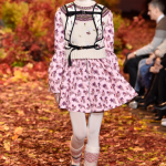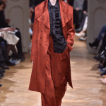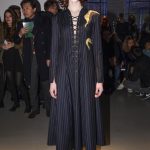 Eclettica ed avanguardistica la collezione AI2017-18 di Junko Shimada, che ha sfilato nell’ambito della Paris Fashion Week: lo spirito indomito dello stile Shimada trova espressione in una masquerade iconica che non lesina in istrionici coup de theatre. Nessuna nostalgia per il passato, ma uno stile in perenne trasformazione, per Junko Shimada, che non ama lasciarsi andare ad echi nostalgici preferendo un panta rei creativo proiettato nel futuro. La designer, figura indipendente ed emblematica della scena parigina, unisce da sempre il rigore e l’umiltà giapponesi con l’audacia e l’open-mindedness parisien. Nella collezione AI 2017-18 tornano i topos che hanno reso iconico il suo stile, in un crogiolo di ispirazioni che vertono su note pop e suggestioni decadenti, tra suggestioni ludiche e tuffi nell’Unheimlich di freudiana memoria. Onirica come una vestale, la donna Shimada ha il volto coperto da maschere in stile nipponico: come una geisha in chiave urban, sfoggia cappe in pelliccia declinate in nuance al neon, da indossare con capi dalle note sporty. Uno stile che attinge molto allo streetwear, in bilico tra sovrapposizioni dal piglio strong e note sportswear che ridefiniscono un’estetica classica imprimendovi un tocco basic ed active. Stivali di gomma ai piedi e tripudio di knitwear in colori fluo, per capi che omaggiano lo stile Eighties. Largo a giallo lime, rosso e rosa fucsia, in una collezione ricca di virtuosismi stilistici e note playful. Ironica e a tratti barocca, la moda di Junko Shimada coniuga note futuriste ad ispirazioni underground. Tra gessato d’ordinanza che impreziosisce cappotti sartoriali sfilano mini dress in tapestry e jacquard prezioso, tra parrucche napoleoniche e tocchi gold, come nei serpenti che decorano il black all over.