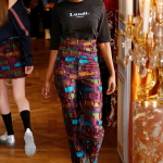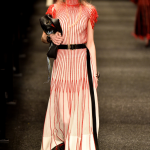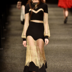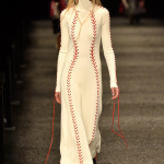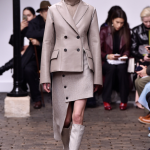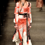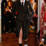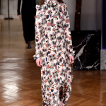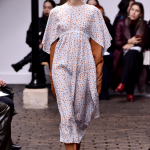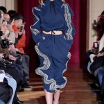 Echi futuristi e suggestioni sportswear caratterizzano la collezione autunno/inverno 2017-18 di Anne Sofie Madsen: la designer danese esplora numerose ispirazioni in una collezione iconica, che non lesina in mirabolanti virtuosismi stilistici che danno vita ad effetti altamente scenografici. In costante bilico tra le tendenze imperanti nella moda contemporanea e la sua estetica, la stilista mixa capispalla sartoriali e costruzioni ardite con inedite sovrapposizioni degne di una masquerade ad affetto. Ricordano le sculture dell’artista danese Esben Weile Kjær i capi che mixano dettagli di carta con nastri argentati, mentre le mannequin che calcano la passerella assomigliano quasi a delle creature aliene, grazie agli occhiali dal mood spaziale. Echi galattici si uniscono a note streetwear in un’estetica forte, quasi sfrontata: ripudia tutti i diktat precostituiti Anne Sofie Madsen, proponendo il più sensuale bustier accanto a pantaloni sporty, mentre dress con collo alto sembrano ispirati da certo folclore dallo charme timeless. Volumi scultorei si alternano a tocchi di una sartorialità destinata a non passare mai di moda, tra giacche biker e trench classici. Decostruzioni ardite e caleidoscopici giochi danno vita ad una collezione che colpisce al primo impatto: se il più classico collo di volpe impreziosisce cappotti neri dal piglio gotico, i trench sono invece declinati in chiave oversize e i capispalla sono impreziositi da stampe check, così come le maxi sciarpe che avvolgono la figura, immancabile must have della prossima stagione invernale. Il poncho sfoggia cuciture in vista, mentre le balze e le rouches decorano capi dal piglio vittoriano. Femminilità e sperimentazione si alternano con garbo e squisita inventiva, in un défilé iconico.