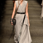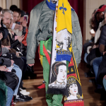 Romanticismo e note streetwear si uniscono sulla passerella di Y/Project: è un autunno/inverno 2017-18 all’insegna dei contrasti, quello che Glenn Martens porta alla Paris Fashion Week. Interpretando in un’ottima fortemente personale il momento storico in cui stiamo vivendo, Martens resta sostanzialmente fedele alla sua estetica, che si basa in larga misura su ispirazioni che hanno radici lontane nel tempo: ecco che il romanticismo del 18esimo si unisce a suggestioni fortemente contemporanee, in uno stile ibrido che mixa streetwear e note retro. Dimenticate icone di stile e socialite, Martens si ispira alle celebrities attuali, come i rapper e i cantanti, protagonisti della cultura pop e nuovi arbiter elegantiae: sono loro ad imporre stili e tendenze, in bilico tra tripudio di denim e suggestioni workwear. Sulla passerella di Y/Project sfila un nuovo concetto di lusso, dichiaratamente underground, intriso di note Nineties: e proprio i rapper degli anni Novanta divengono icone che ispirano Martens. In passerella sfilano iconiche sciarpe raffiguranti re e regine, scultoree nuvole di taffeta e seta, accanto a suggestioni sporty-chic nei bomber e nei capispalla. La tuta da lavoro riacquista nuova vita, in un caleidoscopio di ispirazioni a contrasto, realizzate anche grazie ad uno Styling audace. Largo a tocchi di pelliccia che impreziosiscono le giacche, mentre corsetti e body enfatizzano la silhouette. Una moda classificabile come casual glamour, in un iconico mix di elementi che spazia dal romanticismo al grunge al Glam-rock. Sfrontata e sexy, e un attimo dopo delicata e pudica, la donna che calca la passerella è una musa dalla personalità ricca di inedite sfaccettature. Martens eleva l’ordinario in chiave glamour, riuscendo a conferire nuova vita a capi basic, in una collezione mai scontata.