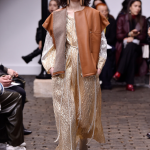 Decostruzioni ardite e sovrapposizioni affascinanti dominano sulla passerella di Nehera: sebbene la collezione autunno/inverno 2017-18 risulti a tratti ermetica, gli elementi che contraddistinguono da sempre l’estetica del brand ci sono tutti. Tra note tailoring e pezzi iconici, Samuel Drira non smette di incantarci, attraverso un excursus iconico nello stile timeless, per pezzi evergreen, da indossare in ogni momento della giornata. Largo a dress impreziositi da stampe floreali, che si alternano a capi dalle suggestioni dichiaratamente workwear: come un aviatore la donna stretta in colletti scultorei, tra linee sartoriali asimmetriche che rivelano audaci dicotomie e mirabolanti virtuosismi stilistici. I capi basic acquisiscono nuova vita, in un continuo gioco di rimandi, che non rinuncia ad un tono intellettuale, per una collezione iconica, in linea con l’estetica del brand. Il défilé si apre con giochi di knitwear tagliuzzato, quasi opera di cimici impazzite, ma l’effetto è affascinante, mai scontato: linee sartoriali asimmetriche si alternano a capispalla in feltro di lana. Le silhouette a trapezio dominano, accanto a trench oversize, che incarnano al meglio lo stile del brand. Capi che ricordano quasi pepli si indossano con maxi guanti a contrasto ed orecchini scultorei; la pelle di trench dal piglio strong non lesina in inediti patchwork, come listini e blocchi bicromatici che attraversano i capi, conferendo loro interessanti spunti artistici. La pelle riveste anche gilet lasciati sbottonati, da indossare sopra inediti kimono: in passerella si alternano volti più o meno giovani, ad incarnare uno stile senza tempo, in una moda che abbraccia il momento attuale, pur mantenendo un’aura fortemente impegnata.