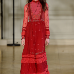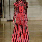 Un crogiolo di ispirazioni variegate attraversa la passerella di Valentino per l’autunno/inverno 2017-18. Sono tanti i filoni che ispirano Pierpaolo Piccioli in un racconto che si pone come un’ode all’estetica del brand: tra echi vittoriani e stampe optical di ispirazione Sixties veniamo proiettati anche in inediti scorci di ispirazione Eighties, con un omaggio al movimento di design del Gruppo Memphis, fondato nel lontano 1981. “Cosa c’è di nuovo oggi?”, questa la domanda da cui è partito Piccioli, un quesito quasi esistenziale in tempi come quelli attuali, in cui tutto sembra già stato proposto. Lo stilista giunge quindi ad una conclusione: è compito della moda riportare in auge il bello, riproponendolo in chiave sempre nuova, senza però rinunciare ad evocare un passato pregno di mirabolanti suggestioni, che risultano potenti anche oggigiorno. “Nuovo è quando vedi cose che conosci già e le unisci in modo diverso”, questo l’assunto da cui parte Piccioli per la collezione per la prossima stagione invernale. Il romanticismo intriso di echi rinascimentali cui ci aveva già abituati la coppia Piccoli-Chiuri viene qui riproposto in un tripudio di sete preziose finemente lavorate: ma occhio alle decorazioni, del tutto inedite. Accanto a stampe vittoriane si uniscono inediti cromatismi optical che strizzano l’occhio al Gruppo Memphis, celebre movimento di design protagonista sulla scena internazionale dagli anni Ottanta. Lunghi abiti con colletto bon ton dalla grazia virginale si uniscono alla grinta di stampe e grafismi audaci, declinati in caleidoscopici blocchi bicromatici, con netta prevalenza di rosso e nero e rosa e rosso. Quest’ultimo accostamento viene proposto più volte nel mix maxi dress e cappottini cocoon, per un inverno all’insegna del colore. Non mancano echi vittoriani nei lunghi abiti impreziositi da rouches e balze, anche qui caratterizzati da colletto virginale con tanto di nastrini. Arte e romanticismo si alternano in modo potente, tra silhouette monastiche e giochi di sete sovrapposte, decorate in un tripudio di artigianalità manifatturiera. Tulle e gemme impreziosiscono maxi dress dal fascino timeless, in una collezione che rielabora un’estetica evergreen, aggiungendovi suggestioni sempre nuove, in un ricercato esperimento stilistico.