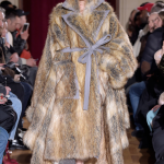 Volumi scultorei e citazioni allo stile degli indimenticabili Swinging Sixties sfilano in passerella da Wanda Nylon: Johanna Senyk per la collezione autunno/inverno 2017-18 gioca su materiali dissonanti, mixati ad hoc in un gioco di contrasti coinvolgenti. Dedicata ad una donna forte, la collezione unisce note argentate che ricordano le uniformi delle cheerleader a design dal piglio glam-rock che profumano di Seventies. Largo a pantaloni cocoon e capispalla oversize declinati in silhouette estreme, dal piglio forte: maglie a collo alto in lurex e vinile conferiscono vibranti echi futuristi ad una collezione in cui l’influenza della disco glam appare predominante. Non mancano suggestioni beach, come nel top ricamato da quadretti vichy e abbinato ad una cappa, tra polo dal piglio sporty-chic e suggestioni che sembrano prese in prestito da una collezione primavera/estate. La stilista, vincitrice del premio ANDAM 2016, mixa con grande nonchalance tessuti sintetici con montone e vitello, tra audaci fur coat in giallo canarino e tocchi di denim, che fanno capolino da black all over. La palette cromatica abbraccia anche i toni del rosso e del turchese, abbinandoli su knit dress dall’aria shabby-chic. Tute in lurex si alternano a maglie in tessuto vichy: dalle gonne escono listini in tessuto, a formare quasi un ventaglio, mentre iconico pied-de-poule in chiave Sixties impreziosisce cappotti vestaglia e pantaloni cargo, abbinati a top che ricordano nettamente note beachwear. Asimmetrie e baschi alla francese decorano una collezione che vede un trionfo di capispalla sartoriali in candido bianco, meglio se abbinati a tute beige. Non mancano chemisier e sovrapposizioni eclettiche, mentre la musa di Wanda Nylon sfoggia ai piedi stringate o furry boots. Chiudono il défilé note siderali nell’argento dominante su tute perfette per un’entrata mirabolante allo Studio 54.