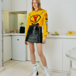 Suggestioni pop si uniscono a note dal sapore grunge in una collezione ironica e vitaminica: Sébastien Meyer e Arnaud Vaillant scelgono la via della presentazione, rinunciando alla sfilata, per un autunno/inverno 2017-18 che si snoda attraverso quattro categorie di capi, sui quali i due designer focalizzano la loro attenzione. Le giacche, le minigonne, i capi in knitwear e i dress dai volumi scultorei divengono protagonisti assoluti di una collezione didascalica, che è stata presentata nell’ambito della Paris Fashion Week: i quartier generali di Courrèges ospitano la proiezione di un videoclip in cui viene presentata la nuova linea. “Abbiamo 27 anni. Siamo nati con internet e i social media nel nostro sangue- è come respirare”, ha affermato Vaillant. “Viviamo con gli schermi e i like, è la nostra seconda natura. Ma allo stesso tempo, siamo convinti che il lusso più grande sia stare tutti nella stessa stanza, tutti qui fisicamente a parlare nella vita reale”, ha aggiunto poi lo stilista. La maison Courrèges sembra tornare agli albori, con una collezione iconica, che predilige minigonne dal sapore Sixties e capispalla dal gusto timeless, come il trench: tuttavia non mancano note che strizzano l’occhio alla contemporaneità, in bilico tra sportswear e street style. Ottimismo, dialogo e design accattivanti dal gusto pop costituiscono i tre filoni su cui si snoda la collezione AI2017-18 di Courrèges: ad improvvisarsi modelli dell’inedito lookbook sono gli amici e le amiche della cerchia del duo di designer, che appaiono nel video di presentazione della collezione, ognuno indossando il capo preferito. Ecco che un minidress simile ad un grembiule in lamé viola si indossa con una t-shirt iconica, mentre una giacca di ispirazione Mod in giallo lime dalle maniche scultoree si indossa con t-shirt, stivali e pantaloni futuristi. Opposizioni e sovrapposizioni audaci caratterizzano la collezione, in bilico tra l’heritage del brand e il futuro della moda. L’unico rimpianto è l’aver dovuto optare per la forma della presentazione, rinunciando all’iconico défilé: un vero peccato, soprattutto per un brand del calibro di Courrèges.