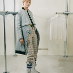 La più ardita sperimentazione si unisce a forme scultoree ricche di suggestioni e charme, in una collezione iconica, che rivela una coerenza di fondo con l’estetica già sperimentata nelle precedenti stagioni: Kunihiko Morinaga sceglie di focalizzarsi più sulla forma che sulla sua funzione, privilegiando l’immagine rispetto al contenuto stesso. Il designer di Anrealage collabora per questa collezione con lo scultore giapponese Kohei Nawa: il risultato dell’inedita partnership è tutto in quei capi dalle linee shift, realizzati con rotoli di oltre 300 metri: tessuti come il denim acquisiscono nuova vita, grazie all’iconica rappresentazione. Non una masquerade ma la vibrante rappresentazione di una patata di creature eteree, dalle forme oniriche. Su un tappeto di muschio sfilano ninfe dal fascino algido, tra simbolismi ermetici e allegorie. Ecco bozzoli di stoffe pregiate che contengono ed occultano il corpo delle mannequin, in una processione misteriosa. Lana, crochet e prezioso jacquard si alternano su cappotti oversize dalle silhouette Fifties e pantaloni ampi. Domina il denim, tra fiocchi, zip e bottoni, che impreziosiscono i cappottini dal piglio bon ton, insieme a rouche e balze, a stemperare il mood onirico della collezione. Le mannequin sfilano a piedi nudi sfoggiando capi scultorei dalle architetture inedite, che coprono il corpo come delle corazze che rimandano però agli elementi della natura: balze e rouches, sete plissettate e giochi di alta sartoria occultano le braccia o il collo, in un susseguirsi di rimandi onirici, per una moda in bilico tra passato e presente. I tagli, realizzati con il laser, sono proiettati in uno scenario futurista; le balze inneggiano ad una femminilità timeless, in un gioco di contrasti mirabilmente mixati tra loro.