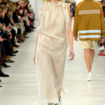 Suggestioni tailoring si uniscono a note equestri in una collezione ricca di sovrapposizioni, pensata per la donna contemporanea: sulla passerella di Stella McCartney sfila una moda pulita ed essenziale, fedele all’heritage del brand. In linea con l’estetica asciutta e minimalista del brand, la designer crea una collezione chic e confortevole, che riesce ad unire mirabilmente funzionalità e stile, riuscendo anche a veicolare un messaggio politico senza dover ricorrere a slogan di alcun genere. Una collezione ispirata alla fede e all’amore, come affermato dalla stilista: “Volevo riflettere il buono della gente nel mio lavoro. Il mio messaggio è chiaro. Voglio mettere insieme la gente in ciò che faccio e la politica di certo è parte di ciò”, ha commentato Stella McCartney. E se può essere rischioso definire una collezione un inno al femminismo, di certo l’autunno/inverno 2017-18 di Stella McCartney non teme di affermare il potere femminile attraverso una sartorialità che tocca vette inusitate: uno stile intriso di archetipi, che si snoda attraverso potenti suggestioni che spaziano dalle suggestioni Fifties all’emancipazione femminile. Sulla passerella del prêt-à-porter parigino sfila una cavallerizza in chiave luxury, che sfoggia maxi trench trapuntati in tessuti techno, col capo coperto dal più classico dei foulard, a ricordare forse la regina Elisabetta nei momenti di relax nelle sue residenze di campagna. Largo a tute intere declinate in colori pastello: qui trionfa il comfort, per una moda che non costringe il corpo ma esalta al contempo la silhouette attraverso ispirazioni potenti. Sicura di sé e consapevole, la donna di Stella McCartney è emancipata e consapevole e non teme di sfoggiare capispalla sartoriali dalle proporzioni oversize, declinati in iconico check di netta ispirazione British. Non mancano suggestioni mannish e note sporty-chic, tra decorazioni pittoriche che impreziosiscono maglioni in cashmere: ecco che sul fronte di una maglia fa capolino un particolare tratto da un’opera del pittore del 18esimo secolo George Stubbs. Il défilé si chiude con le mannequin impegnate in una danza, quasi un rito apotropaico, sulle note di “All You Need Is Love” dei Beatles e di “Faith” di George Micheal. Energetica e proiettata in un avvenire vissuto con inguaribile ottimismo, la donna di Stella McCartney ostenta una femminilità garbata e mai scontata.