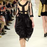 Artigianalità e note couture attraversano la passerella di Maison Margiela, protagonista del prèt-â-porter parigino. John Galliano fa piazza pulita di ogni sovrastruttura e di ogni diktat pre-confezionato, scegliendo invece di ricombinare i pezzi basic del guardaroba interpretandoli in modo inedito. Il suo animo da classicista lo porta da sempre a considerare l’haute couture una sorta di fucina di idee da realizzare entro i più ampi confini del ready-to-wear. Mirabile interprete della cultura pop, il couturier ama rivolgersi alle dive contemporanee: oggi, forte della maturità e della saggezza acquisita con gli anni, lo stilista non lesina in virtuosismi stilistici che strizzano l’occhio anche a certa realtà commerciale, forse un tempo snobbata. Il risultato è una collezione iconica e suggestiva, che predilige ardito decostruzionismo accanto a quel processo che lo stilista definisce décortiqué.