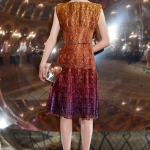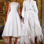 Sfarzo ed opulenza si uniscono a suggestioni Art Déco e a note rococò, in una collezione dallo charme timeless: Alithia Spuri-Zampetti si ispira alla storia della moda parigina per l’autunno/inverno 2017-18 di Paule Ka. In un tripudio di riferimenti neoclassici e note barocche, sfilano veneri proiettate in una dimensione onirica ed atemporale. “Si tratta di imitazione. Questo è ciò accade nella moda parigina”, ha ammesso la designer, che ha scelto come location della presentazione della collezione i saloni dell’Opera del Grand Hotel InterContinental Paris, in bilico tra atmosfere neoclassiche e decorazioni di stampo barocco. Le sculture divengono ispirazioni per capispalla percorsi da drappeggi, lane decorate con stampa check e tweed preziosi; largo anche a dettagli come frange, che arricchiscono le trame di nuove architetture. Corsetti e crinoline in stile Marie-Antoinette percorrono abiti da sera in materiali futuristi, tra neoprene e broccati di seta, in un curioso sincretismo tra epoche diverse. Pizzo chantilly metallizzato si unisce ad effetti grafici vibranti, per caleidoscopici contrasti che impreziosiscono abiti, giacche e gonne, aggiungendo un inedito tocco glam rock. Largo a stampe camouflage in jacquard metallizzato e frange dorate, che decorano cappotti scultorei, perfetto mix di tradizione ed innovazione: in bilico tra suggestioni country-chic e sfarzo luxury, i cappotti check smitizzano il più classico pattern scozzese conferendogli inedite citazioni couture. Tweed pregiato domina su tailleur profilati di pelliccia e maxi poncho dal piglio Seventies, mentre piume all over impreziosiscono abiti da ballo dai volumi scultorei. Decorazioni gioiello si posano su maxi dress da gran soirée declinati in rosa pallido, accanto a pompose architetture che enfatizzano la silhouette femminile. Patchwork di pattern tapestry si unisce su abitini e giacchette smilze, in un mix & match teatrale e sfarzoso, perfetto per una serata in grande stile.