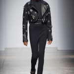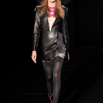 «Questa collezione è un’evoluzione della precedente. Abbiamo ripreso il mood degli anni 90 e lo abbiamo riportato in un contesto contemporaneo, mixando l’atteggiamento sportivo della quotidianità all’eleganza, nella sua accezione di approccio femminile e gusto tipicamente italiano», ha dichiarato il duo creativo, al timone del brand dal 2011. Largo ad elementi luxury come inserti pitonati, l’uso del vinile e le borchie, che impreziosiscono giacche biker dal mood aggressive. Suggestioni maschili nelle spalle oversize dei capispalla, mentre la sartorialità italiana fa capolino nelle cuciture e nei capi strutturati. Classicità timeless nel Principe di Galles e nel montgomery, che torna prepotentemente in auge, reinterpretato attraverso un occhio nuovo. Icona di riferimento è la splendida Jasmine Le Bon, top model simbolo degli anni Novanta. Il focus è sul punto vita, ad enfatizzare la femminilità, in un inedito gioco di contrasti. Non mancano suggestioni sporty accanto al gusto punk: il défilé, che ha avuto luogo in uno spazio vicino l’aeroporto di Linate, coniuga maschile e femminile, note militari e tessuti preziosi, in un melting pot ispirazionale dal forte impatto scenografico. Tripudio di pelle all over, protagonista indiscussa sulla passerella, impreziosita da gioielli, borchie e texture iridescenti.