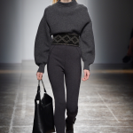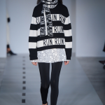 Sportmax torna alle origini, con una collezione che celebra l’identità primigenia del brand, tra note sportswear e tessuti techno. Sulla passerella della Milano Moda Donna sfila una collezione dinamica e minimale, tra volumi esasperati e suggestioni sporty. Da sempre divisa tra l’anima sportiva e la femminilità, la donna Sportmax tenta di coniugare i due poli opposti della propria personalità in un inedito sincretismo, che unisce i pilastri su cui si fonda l’heritage della griffe: maschile e femminile si fondono, insieme a note active e sofisticata sartorialità. La young label del gruppo Max Mara si rivolge ad una donna fortemente legata alla contemporaneità: largo a capi sportivi e silhouette oversize che sembrano strizzare l’occhio agli Eighties. L’atmosfera che si respira in passerella è nuova, in un inedito ritorno al passato, per un autunno/inverno 2017-18 vissuto attraverso gli occhi di una donna stanca di adattarsi a standard che non le appartengono: grintosa ed eclettica, la musa di Grazia Malagoli, direttore creativo del brand che fa capo al gruppo Max Mara, si riappropria di elementi che rientrano a pieno titolo nell’abbigliamento sportivo, impreziositi però da note femminili che fanno capolino qua e là. Largo a tute oversize, giacche e camicie, tra knitwear pregiato e materiali techno trapuntati, perfetti per affrontare il rigore inverale. Comfort e stile diventano il fil rouge di una sfilata coraggiosa, che vede una virata decisa verso il passato più autentico: tra materiali hi-tech e dettagli sporty-chic sfilano capi in total black: funzionali ed essenziali, le mise che si alternano sul catwalk vedono un tripudio di grafismi optical intervallati da tocchi arancio. Il logo torna prepotentemente alla ribalta e lo fa in chiave tutt’altro che low profile, divenendo onnipresente come inedita stampa che impreziosisce felpe e capispalla. Atletica e pratica, la donna Sportmax sfoggia leggings e tute workwear e maglioni raffiguranti slogan che inneggiano a correre e a praticare sport, in linea con lo spirito della collezione. Astenersi pigre.