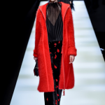 Voltare pagina- questo lo scopo dichiarato da Giorgio Armani, che con la collezione autunno/inverno 2017-2018 di Emporio Armani punta a creare un guardaroba pensato per la donna moderna. Uno stile iconico e fortemente riconoscibile, improntato alla contemporaneità, perfetto per una donna dinamica e moderna. Re Giorgio si propone di rompere con i diktat della moda attuale, in tempi in cui ancora le persone guardano al passato per avere esempi di stile da prendere come ispirazione. Sulla passerella della Milano Moda Donna sfilano silhouette comode e linee allungate, in un alternarsi di gonne nere ricamate, maglie che inneggiano ad un’eleganza disimpegnata e tailleur pantaloni sartoriali impreziositi da trasparenze. Largo a colori vibranti, in particolare rosa, rosso e verde, pattern da cui fanno capolino cut out che ricordano i quadri di Matisse; non mancano inoltre stampe floreali a conferire un tocco di colore a giacche scure dal piglio altrimenti formale. Protagoniste le pellicce, decorate con grafismi optical in black & white, cappotti oversize e silhouette morbide. Stampe floreali fioriscono su top e gonne, pantaloni in pelle si indossano con tuniche in pizzo mentre la giacche si accorcia e si indossa con una sorta di cravatta. L’androginia, da sempre cifra stilistica per antonomasia dell’estetica di Armani, si unisce in questa collezione a silhouette decostruite e dettagli che inneggiano allo sportswear. Tripudio di colori, declinati in geometrie e grafismi optical, che si alternano al black all over. La collezione si snoda nel segno del contrasto, in un mix & match iconico che si arricchisce di suggestioni mannish. Tra blu notte predominante si fanno largo inaspettate esplosioni di rosa shocking, accanto a pois irriverenti, motivi Chevron e paillettes in PVC. Non manca un tocco classico nel Principe di Galles, che si alterna ai tessuti glitterati, in un interessante crogiolo di ispirazioni multiformi.