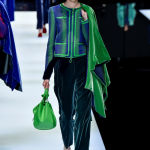 Vibranti contrasti cromatici intrisi di suggestioni esotiche, caleidoscopici effetti trompe l’oeil e citazioni urban: la collezione autunno/inverno 2017-18 di Giorgio Armani non lesina in arzigogolati virtuosismi stilistici, in un tripudio di puntellature degne di una tela impressionista, tra note urban e silhouette fluide. Una sfilata iconica, che celebra lo stile Armani tra stratificazioni e citazioni etniche: un viaggio in territori inesplorati, tra Cile e Perù, per uno stile che unisce cristalli e frange a sarong e capi che strizzano l’occhio all’esotismo. Largo a bluse impalpabili, sovrapposizioni di gonne e pantaloni, cristalli preziosi che illuminano giacche e abiti, in un affascinante viaggio attraverso epoche e culture millenarie. Re Giorgio non si risparmia e celebra una moda impressionista, tra cromie accese e nappine, gioielli dal gusto tribale e sfumature accese. Blu notte, verde smeraldo e rosso cardinalizio sono le nuance predilette per completi dal gusto timeless e cappotti caratterizzati da grafismi arditi. Torna in auge il blazer, che accompagna il corpo e la silhouette con la maestria di cui solo Armani è capace. La gonna-panta si preannuncia come must have incontrastato della prossima stagione invernale, tra sete plissé e twist irriverenti che smitizzano senza mai tradire l’heritage primigenio del brand. Semplice ed efficace, la collezione celebra uno stile iconico, tra contrasti vibranti e pittoreschi tocchi di artigianalità dal sapore esotico. Sul défilé si alternano poncho in mohair e pellicciotti, pantaloni ampi e smoking con cristalli. Onirica e lussuosa, la collezione non lesina in citazioni allo stile che ha reso emblematico il marchio pur proponendo una vasta gamma di capi che strizzano l’occhio alla contemporaneità.