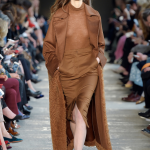 Morbidi cappotti avvolgenti, pregiato knitwear e note minimal-chic pervadono la collezione autunno/inverno 2017-18 di Max Mara: sfila sulla passerella milanese una femminilità rilassata e sofisticata, in un tripudio di effortlessy-chic. Banditi inutili coup de theatre, l’eleganza è minimale e si esprime in una collezione all’insegna del rigore, declinato in chiave luxury, attraverso l’uso di materiali di pregio, che conferiscono un’allure chic alla donna che calca la passerella: “Questa collezione parte dal rigore e dalla classe femminile. Interpretiamo lo spirito di una donna intelligente, che vuole arrivare in alto”, ha dichiarato Ian Griffiths, direttore creativo del marchio. Una sfilata suggestiva, che si rivolge alla donna contemporanea esaltandone la femminilità in chiave daywear: e se la donna ha il volto di Gigi Hadid, Natasha Poly, Elsa Hosk e Lily Donaldson -solo per citare alcune delle top che si sono alternate sulla passerella- il risultato è assicurato; il cappotto cammello si rivela capo principe di una collezione che punta al comfort. Largo a cappotti sartoriali oversize in velluto e shirling, gonne a matita in velluto abbinate a morbide maglie a collo alto, pantaloni ampi da indossare con knitwear a trecce. In passerella sfila una parata di top model, tra cui la brasiliana Isabeli Fontana, Eniko Mihalik e l’italianissima Vittoria Ceretti, che incarnano alla perfezione il mood della collezione, che si rivolge ad una bomba sexy che non ha bisogno di ostentare le curve per apparire comunque bellissima. Volti puliti con poco trucco e lunghi capelli lasciati lisci sulle spalle: questa è la nuova femminilità sdoganata da Max Mara, in un revival di bellezza acqua e sapone destinata a non passare mai di moda. Le modelle indossano cappe in cashmere, trench sartoriali e mise ton sur ton, in una palette cromatica che abbraccia il cammello, l’oro, il nero, il marrone, il grigio e il rosso. Pulizia e rigore di ispirazione scandinava si traducono in capi dalle linee essenziali, per un ritorno al minimalismo più chic.