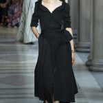 Nei look per la sera, in effetti, si aggiunge un delicato rosa cipria e un intenso burgundy insieme al raffinato blu notte. «Tutti gli abiti da sera hanno un bel movimento, questo per me è molto importante». Le silhouette lineari sono infatti rese leggere e fluide da velluto e tulle, distribuiti a piene mani nei lunghi abiti da sera. A percorrere tutta la collezione autunno inverno 2017-18 un dettaglio bon ton: il fiocco. Tocco vezzoso e romantico sulle camicie bianche preppy style, chic e raffinato sugli abiti da sera, contemporaneo su giacche da biker e abiti chemisier. Alla New York Fashion Week, Carolina Herrera porta una donna decisa e moderna, romantica ed elegante, che ha fatto della semplicità la sua arma di seduzione.