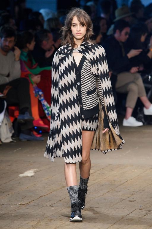Il design avanguardistico non teme dettagli femminili, come i fiocchi, che impreziosiscono capi dai volumi over e dalle suggestioni Eighties. I toni neutrali della palette cromatica indugiano sul nero all over ma sono presenti anche righe e interessanti mix & match e pattern futuristi. I materiali usati privilegiano le linee fluide di una silhouette morbida, mentre qua e là tocchi di un velato romanticismo fanno timidamente capolino tra capispalla dal taglio sartoriale e volumi decostruiti.