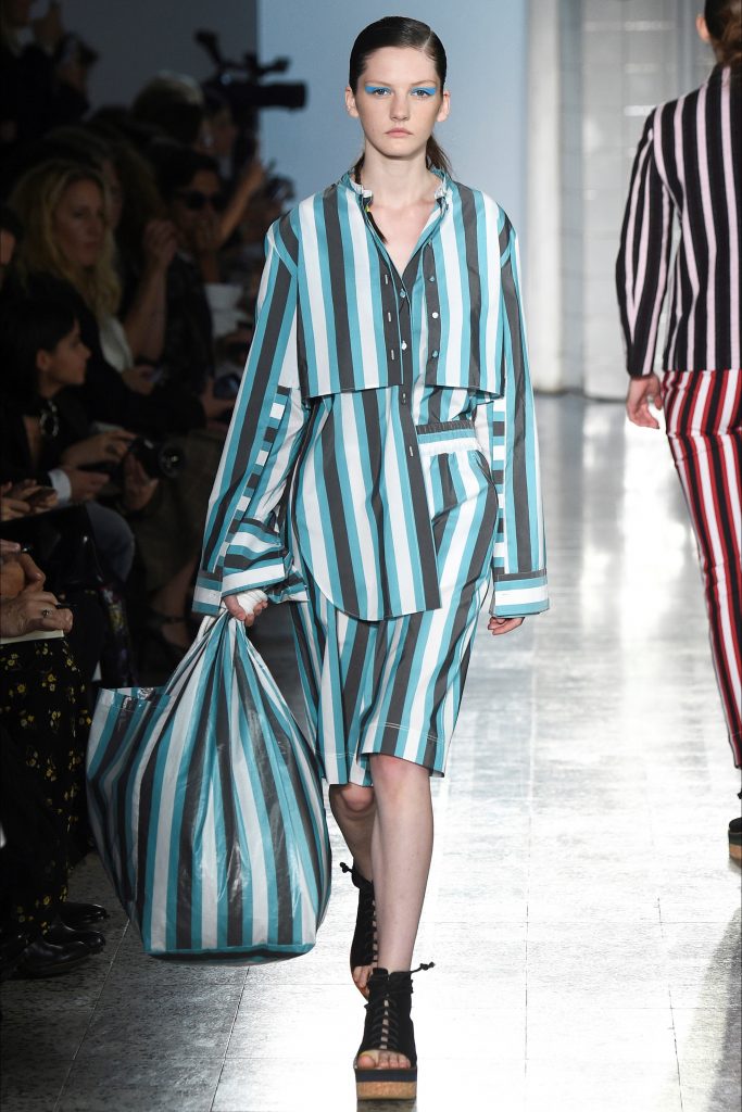 Da sempre tra i fashion trend primaverili più amati, le righe sono protagoniste indiscusse anche della primavera/estate 2017. Declinate in ogni colore, impreziosiscono abiti, accessori, capispalla, in un caleidoscopio di nuance vitaminiche, per affrontare con brio il caldo estivo. Tantissimi sono gli stilisti che hanno proposto capi a righe nelle loro collezioni, a partire da Akris, che ha portato sulla passerella tute a righe, da indossare con maxi trench, o ancora chemisier in seta, perfette per trovare riparo dall’afa estiva. Righe protagoniste anche sulla passerella di Anteprima e di Arthur Arbesser, che sforna una collezione vitaminica in cui le righe verticali dominano. Mirabolanti giochi cromatici per righe multicolor in passerella da Etro, che unisce alla consueta stampa foulard anche pattern a righe, per capi sofisticati e chic. Righe in versione micro hanno caratterizzato anche le collezioni di Balenciaga ed Eudon Choi. Francesco Scognamiglio propone abiti ricamati con romantiche rouches e declinati a righe bianche e azzurre, nuance perfetta per la stagione estiva. Nuovo gessato protagonista assoluto della sfilata Lanvin, per capi dalle suggestioni mannish impreziositi però da camelie: sfila uno smoking pensato per lei, che attinge molto al guardaroba maschile. Trionfo di cotone e minidress impalpabili da Lucio Vanotti e Maryling, mentre Monse propone un inedito patchwork rigato, che accosta pattern eterogenei. Righe e giochi cromatici effetto trompe l’oeil in passerella da Nina Ricci, mentre da Mulberry sfilano tailleur gessati dal sapore classico, stemperati però da sapienti note ironiche. Righe multicolor e proporzioni over in passerella da Ports 1961, per abitini e maxi tuniche. Da Sacai ancora full immersion nelle righe, per colori accesi e tessuti leggeri. Da Ermanno Scervino le righe assumono una connotazione romantica, in bilico tra note ladylike e suggestioni infantili, per jumpsuit delicate impreziosite da fiocchi bon ton. Giochi di trasparenze e lunghe gonne svolazzanti a righe black & white in passerella da Roccobarocco, per inediti giochi cromatici. Da Sportmax le righe ricordano quasi delle lische di pesce, per grafismi originali dal grande impatto scenografico. Sonia Rikyel infine, da sempre amante dei capi a righe, propone maxi prendisole declinati nei toni del sabbia e del blu, da indossare con la più classica delle borse in paglia. Ed è subito estate.