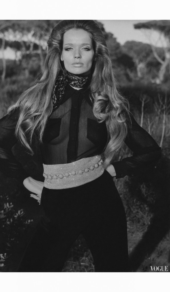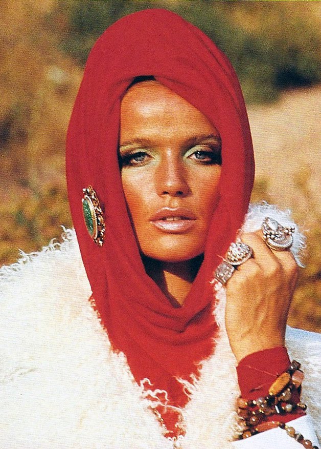 - Veruschka in Libano, abito Yves Saint Laurent, foto Franco Rubartelli, Vogue Paris, giugno-luglio 1969