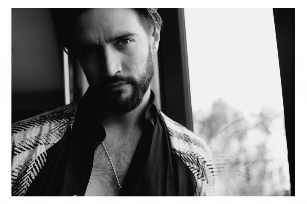 A vederlo non fa una piega, è bello da irritare, gentile, ma il lato dominante è la voce: baritonale, voluminosa, chiara, disinvolta – una di quelle voci che vorresti ti svegliasse al mattino.