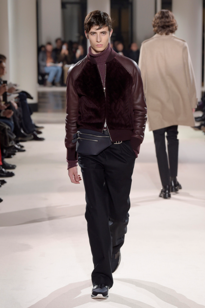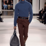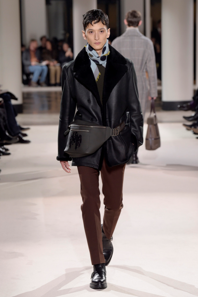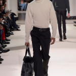 Spicca tra gli accessori il marsupio: oggetto di culto negli anni Novanta, qui è declinato in un modello oversize. Spiccano dettagli preziosi, dalle suggestioni luxury, come il coccodrillo che impreziosisce un bomber nero. Agnello e lana classica si alternano tra pregiati maglioni in misto di seta e cashmere e pantaloni dal taglio sartoriale. L’uomo che calca la passerella non lesina in capi chic come i giacconi in pelle o principe di Galles stretti in vita e i maglioni a collo alto, dal retrogusto esistenzialista. Hermes si distingue ancora una volta per uno stile effortlessy-chic e per una tradizione immortale. Nel segno dell’eleganza più autentica.