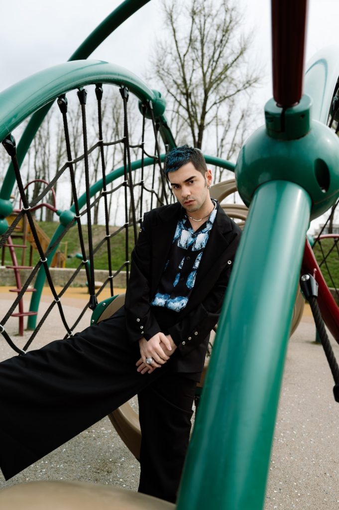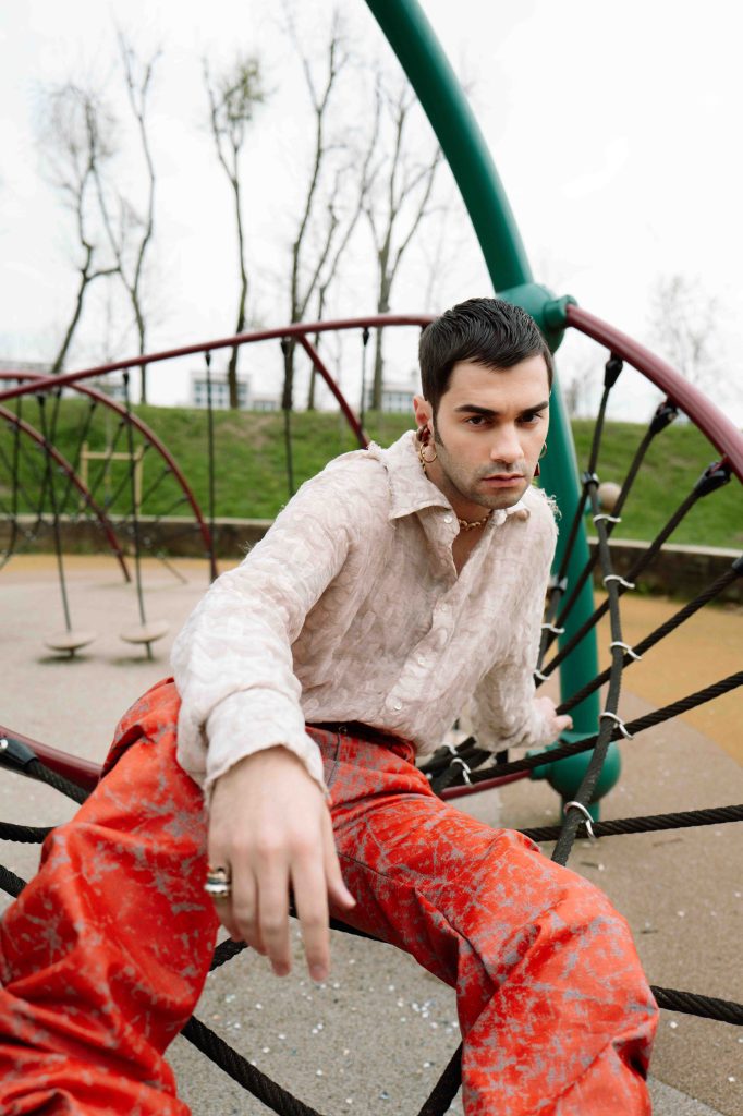 << Ma sai, ho un concetto molto chiaro di quello che è la moda. Seguire le mode non ti porta ad essere di moda; mentre lo fai qualcuno le ste già cambiando. Non ho reference chiare, non voglio somigliare a nessuno. Ammetto però che, quando sei sotto i riflettori, la paura di non essere alla moda c’è. A Sanremo ho sentito dire di essere “OLD”: a dire il vero ho apprezzato questa caratteristica, mi piace essere diverso dagli altri. La moda è ciclica, certe cose poi ritornano, e se vuoi essere autentico devi anche prenderti il rischio di non essere a passo coi tempi. Di recente ho ascoltato l’ultima di Tananai, e ho apprezzato che abbia scelto un arrangiamento con tutti gli strumenti: sembra paradossale, ma pare sia percepita come una cosa “moderna”. >>