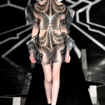 Illusioni ottiche e citazioni all’arte cinetica sono state protagoniste del défilé di Iris van Herpen, che ha sfilato nell’ambito dell’haute couture parigina. La stilista olandese ha dimostrato ancora una volta un estro raro, indagando mirabili illusioni ottiche su uno sfondo realizzato dall’artista italiana Ester Stocker. Visionaria e sperimentatrice, Iris Van Herpen porta sulle passerelle parigine una collezione dai risvolti onirici in cui spiccano tulle e poliuretano dipinto a mano, tra grafismi caleidoscopici e virtuosismi stilistici. Sfilano 16 capi caratterizzati da curve lineari e pattern ipnotici realizzati con effetti 3D che impreziosiscono i capi. “Le forme sono costruite ma è il corpo che cambia le forme e modella gli angoli quando ci cammini”, ha commentato la designer. Una couture che si tinge di note high-tech quella prediletta dalla stilista, che utilizza tecniche futuriste per una moda mai banale: sperimentazione ed estro caratterizzano la collezione haute couture primavera/estate 2017: in passerella una creatura eterea ed evanescente, che ricorda quasi una medusa. Largo a tripudio di black & White per abiti corti e trasparenti, che risplendono tra sete preziose e tulle elaborati. Intersezioni e intarsi geometrici risplendono su capi scultura dalle costruzioni ardite, che strizzano l’occhio alla tecnologia. Si alternano abitini da cocktail con punto vita definito e gonne a palloncino, ma anche lunghi abiti impalpabili. Largo a volumi esasperati e capi scultura che ricordano le creazioni di Alexander McQueen, nel cui studio la designer si è formata. Una couture digitalizzata che non lesina in ardita sperimentazione e inediti giochi cromatici. Ipnotico e suggestivo, il défilé rielabora i tradizionali codici stilistici associati al brand olandese, aggiungendo note inedite associate all’uso della tecnologia.