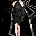 Nella location scelta occhi puntati sull’installazione zen dell’artista giapponese Kazuya Nagaya: le modelle sembrano statue animate, quasi creature di un altro mondo. E attraverso il “seijaku”, concetto nipponico che indica il trovare la serenità nel caos della vita, veniamo proiettati in una nuova dimensione. La meditazione zen abbraccia la couture in un défilé che trae ispirazione dalla cinematica: le vibrazioni sonore divengono il tramite per accedere ad una dimensione onirica.
