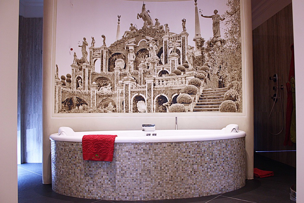 La immagino salire con l’ampio vestito di seta color del cielo, nello storico ascensore datato 1914 (una vera rarità per l’epoca), e ancora intatto nel palazzo con la poltroncina interna in gobelin, quel meraviglioso tessuto che ricopre i salotti più graziosi, dalle trame fiorite con i colori più tenui e che ricorda gli arazzi Gobelins, Manifattura storica del XVII secolo. Anche i corridoi omaggiano la bella Principessa, con foto, ritratti e documenti che ne ripercorrono la storia, e una stanza dedicata, la numero 18, Sissi, l’imperatrice.
