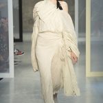 La modernità di questa collezione viene mitigata da plissettature generose che conferisco al défilé una vaga reminiscenza rétro.