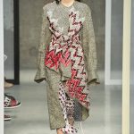 Le stampe sono basic, dalle classiche righe al mood floreale, per un pattern definito dalla designer «broken promise». Gli avvolgenti cocoon coat rivelano linee nuove e inedite, come la cintura laterale a scomparsa. A metà tra la vestaglia e il kimono, i nuovi cappotti esaltano la comodità. Marni sdogana ufficialmente l’uomo in pelliccia: la parola d’ordine è osare. Che sia una stola o un cappotto, l’uomo che calca la passerella non teme il freddo, facendo proprio un capo luxury tipicamente femminile. Il lusso diviene ora alla portata di tutti, e viene sapientemente sdrammatizzato, grazie a sneaker e berretti.