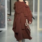 Tutto l’eclettismo della designer Consuelo Castiglioni culmina in un’esasperazione delle ampiezze; con abiti che fanno trapelare un certosino studio di forme e proporzioni per sfidare la forza di gravità.