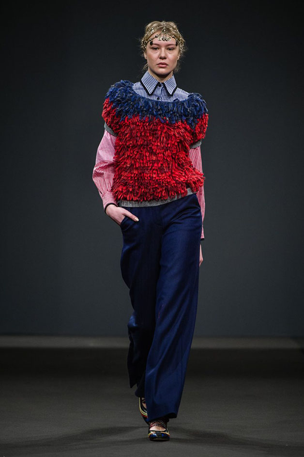Una collezione quella di Miahatami, molto ricercata e curata nei particolari, nelle forme e nelle lavorazioni: nodi (che ricordano le sciarpe che le danzatrici del ventre appongono sui fianchi), intrecci, sovrapposizioni con strati di tessuti (d’ispirazione tradizional-popolare), frange di seta e pieghe a ventaglio, formano outfit quasi a ricordare le linee architettoniche.