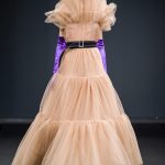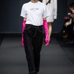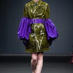 La collezione autunno inverno 2017-18 mescola ad arte streetwear e couture, per un’eleganza contemporanea e molto femminile. L’attitude casual e naturale viene interrotta da ruches, fiocchi, balze. Capi iperfemminili si abbinano pantaloni cargo e t-shirt con la scritta “Hot Couture“. Tessuti e lavorazioni d’alta moda come pizzo, georgette, dévoré di velluto incontrano denim, tessuti tecnici, vernice ed ecopelliccia. Ampie maniche e cinture-gioiello in raso si innestano su un trench di vernice, in un audace accostamento di colori; lunghi guanti rosa shocking si indossano con maglia più basic; cappellini da baseball su abiti couture. Le tonalità basiche, pastello e nude convivono con toni forti che attirano gli sguardi come viola e verde, stampe geometriche e floreali si uniscono in look coloratissimi. Mescolando bon ton e street culture, principesse e maschiacci, contaminazioni pop e tagli sartoriali, Brognano è stato capace di sintetizzare gli opposti con leggerezza, senza eccentricità e nel rispetto della femminilità contemporanea. La sua moda donna autunno inverno 2017-18 è fresca e giovane, adatta a ragazze che scelgono uno stile casual ma non banale. Questo ragazzo prodigio ha dimostrato di poter fare grandi cose e di avere tutta l’intenzione di diventare un nome importante nel fashion system.