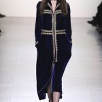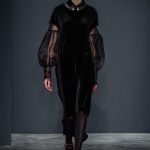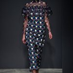 Il tocco più frizzante nella moda donna autunno inverno 2017-18 è sicuramente il pellicciotto rosa shocking, che Tadashi Shoji abbina sapientemente a pizzo nero e ricami floreali. Le silhouette a colonna e i monospalla drappeggiati risultano forse appesantiti dall’uso di tessuti dalle texture importanti come velluto, broccato, devoré e da una palette di colori troppo scuri. Ma lo spazio per il romanticismo c’è ed è nei ricami floreali, nelle rose distribuite a piene mani, in quei look che ricordano un po’ Game of Thrones e un po’ delle principesse gotiche. Una moda donna eccentrica, che guarda a un passato forse ritenuto più autentico del presente. «Adesso è tempo di esprimere il proprio io» ha dichiarato Tadashi Shoji dietro le quinte dello show nel giorno d’apertura della settimana della moda di New York. Una rivoluzione d’amore da compiere prima dentro di sé e poi nel guardaroba del prossimo autunno inverno 2017-18.